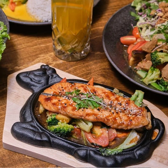 diverse menu including vegan options, signature hot dishes, and seasonal